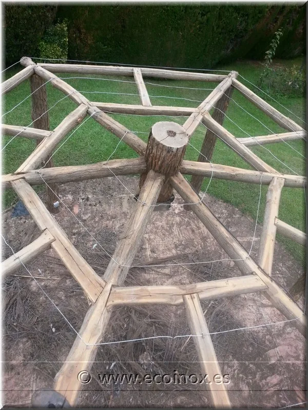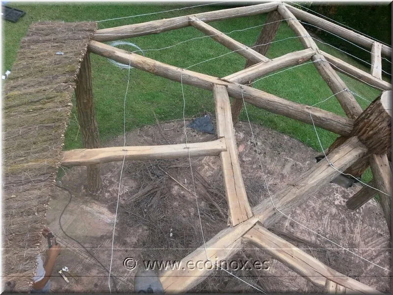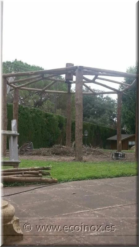 ECOINOX  ha realizado una sustitución del tejado de brezo de una pérgola de madera de pino torneado en Ametlla del Vallès